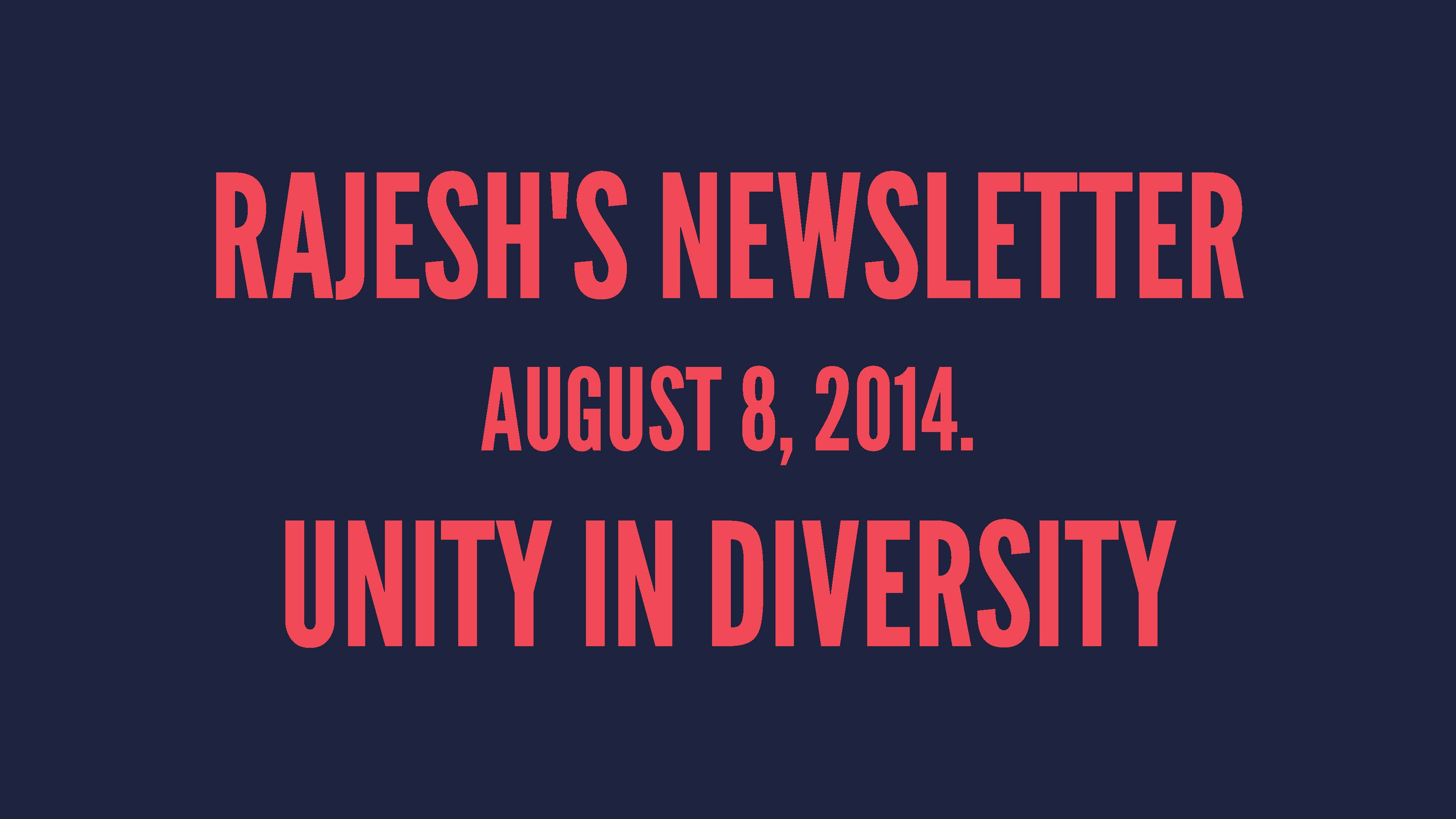 Rajesh Newsletter. August 8, 2014. "Unity in Diversity"