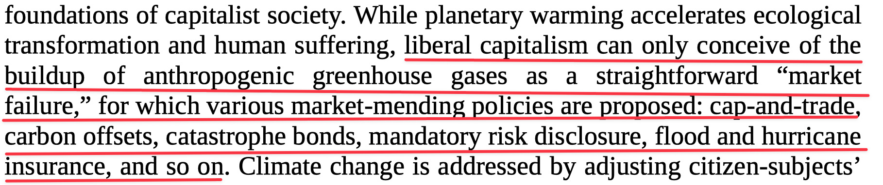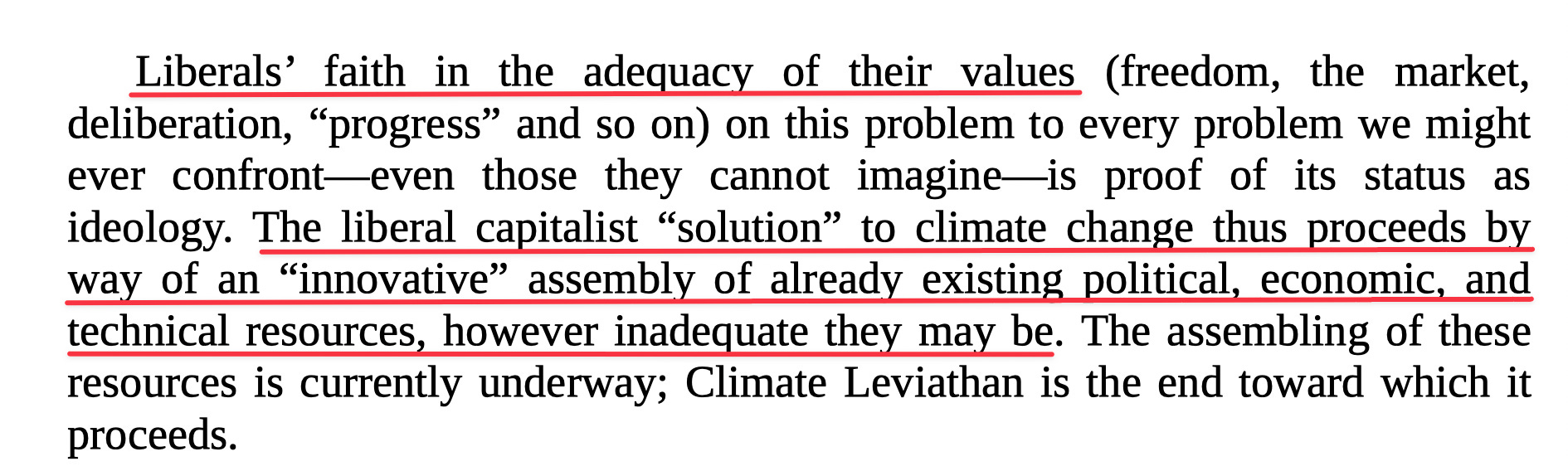 Today’s update is the last one on Climate Leviathan - I am mostly done with the book and the remaining arguments are repetitive. The central conundrum the book poses is the following: