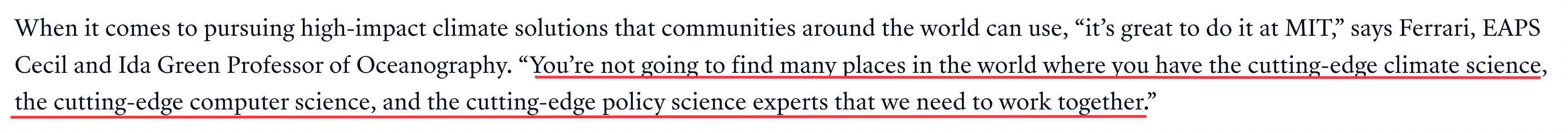 That claim is echoed by the most prestigious institutions of the liberal world. Here’s some publicity material from MIT’s new climate grand challenge initiative called “Computing our Climate Future”