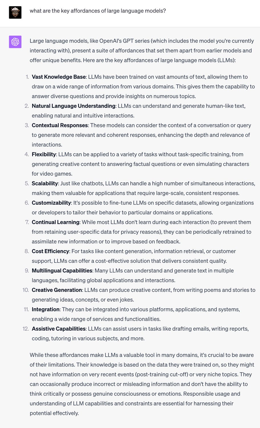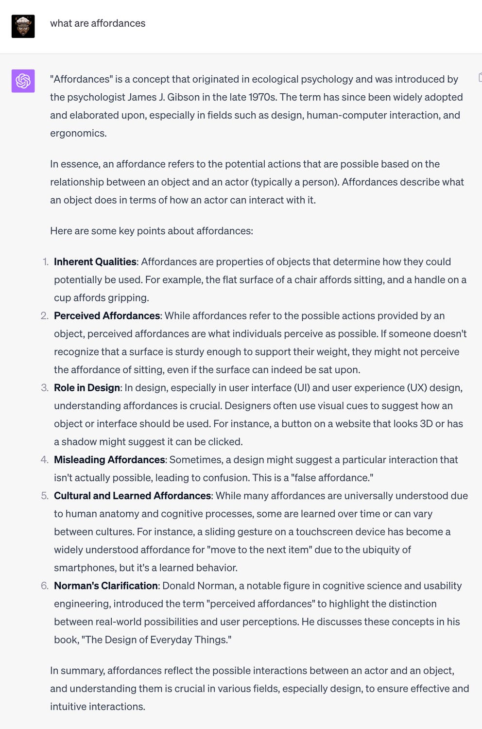 The most prominent affordance of Chat GPT is its bias towards dialog. Unlike previous computer screens, whether it's a swipe or it's entering of text or a click, they're all interactions in which there's only one agent while with chat GPT, there are two interacting entities and that's the dominant feeling of engaging with this screen.