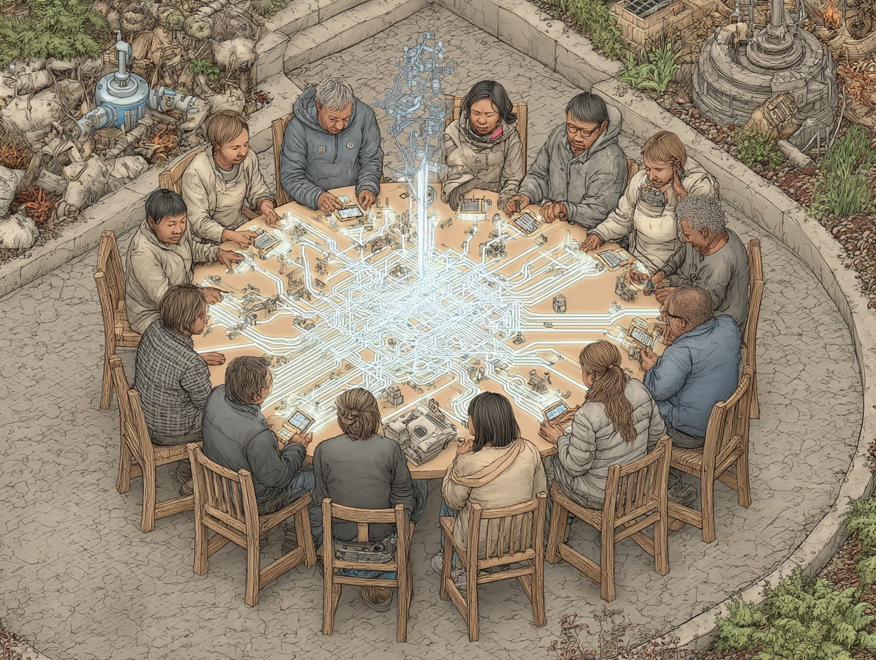 Once you see that, you can imagine designing metabologies as carefully as we design constitutions or party platforms. You could, for example, build a contracting protocol in which every bid, every need assessment, every delivery milestone is logged in a public ledger; where algorithms are audited; where communities can veto installations that don’t match their needs; where payments are automatically released only upon verified performance. In that world, “provide one kilowatt to every family” isn’t just a slogan; it’s compiled down into stepwise rules that are close to the metal, operating where people, machines, and materials actually meet.