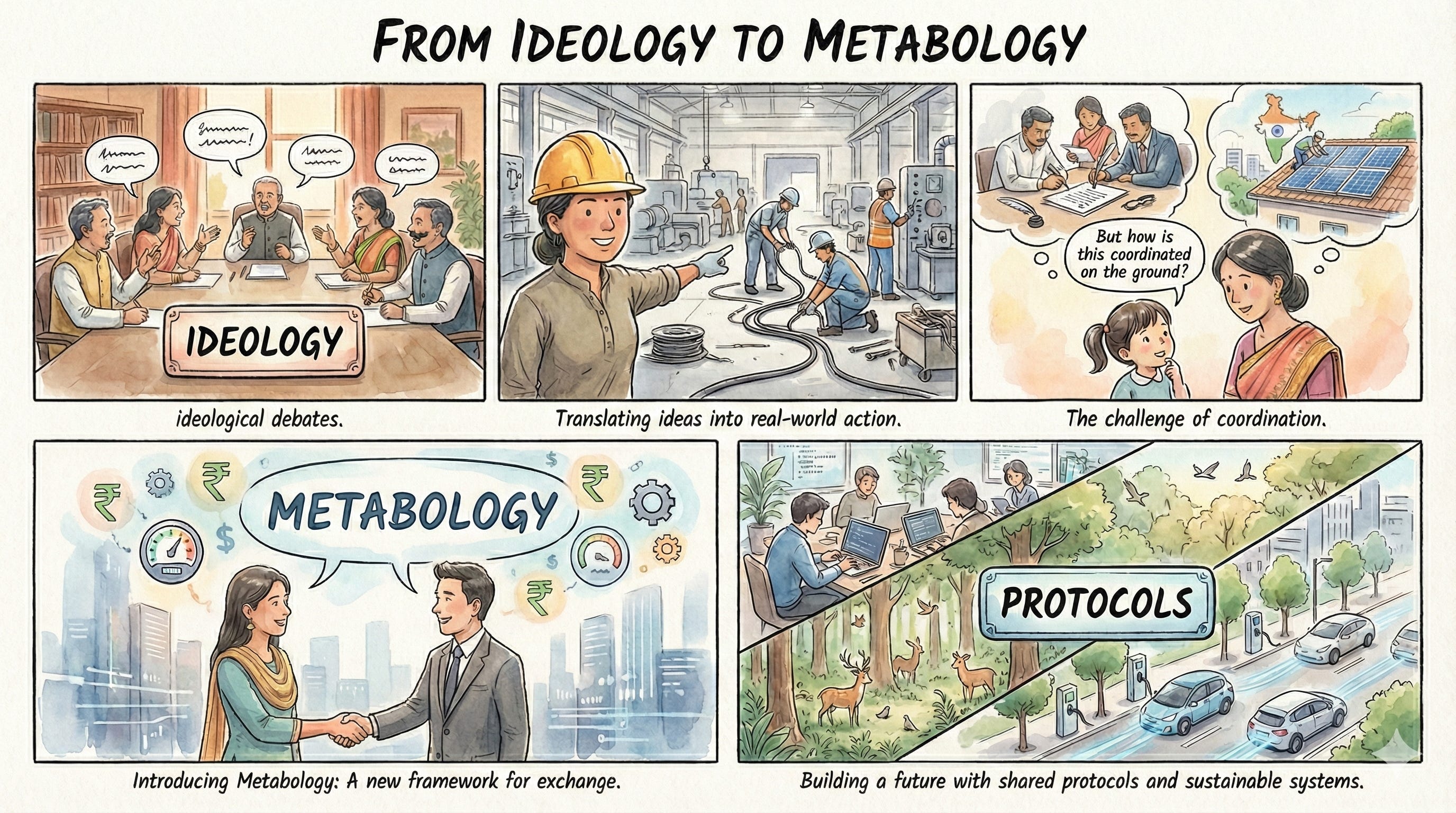 Metabology asks us to treat those messy mechanics not as noise or “implementation details,” but as the main story. Instead of starting from grand principles and working downward, metabology starts from the ground up and asks: what are the protocols by which decisions actually get made, resources actually move, and systems actually run?