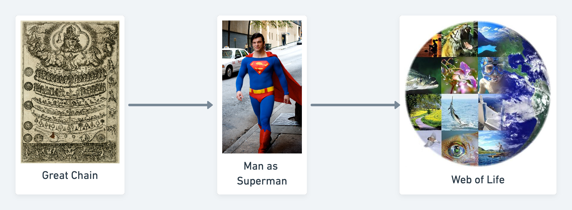 Over the next three weeks, I am hoping to give a bird’s eye view of two transitions: the transition from the great chain of being to the self-creating human and the impending transition from the self-creating human to the co-creating web of life.