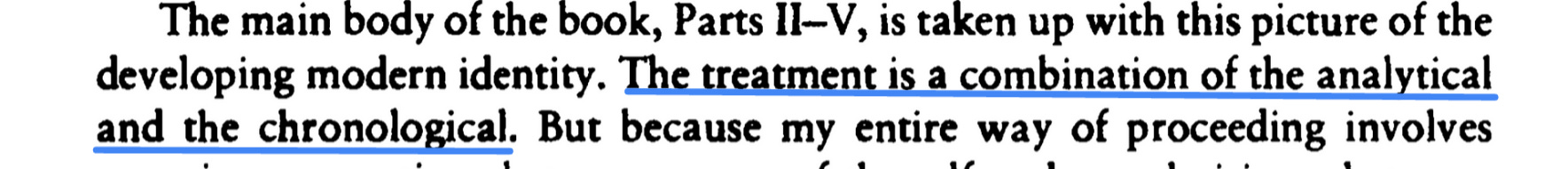 You can see what I am trying to do here: as Taylor traces the outlines of the self, I will keep weaving a third cognitive thread into Taylor’s duo of analysis and history so that we surface the affordances that Kant uses to build his metaphysical system.