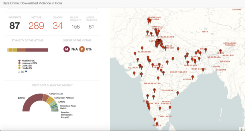 Indiaspend recently released a visualization of all the cow related violence in India since 2010. Note how they are all concentrated around Delhi and almost all of them are in North India. We’ll come back to that later.