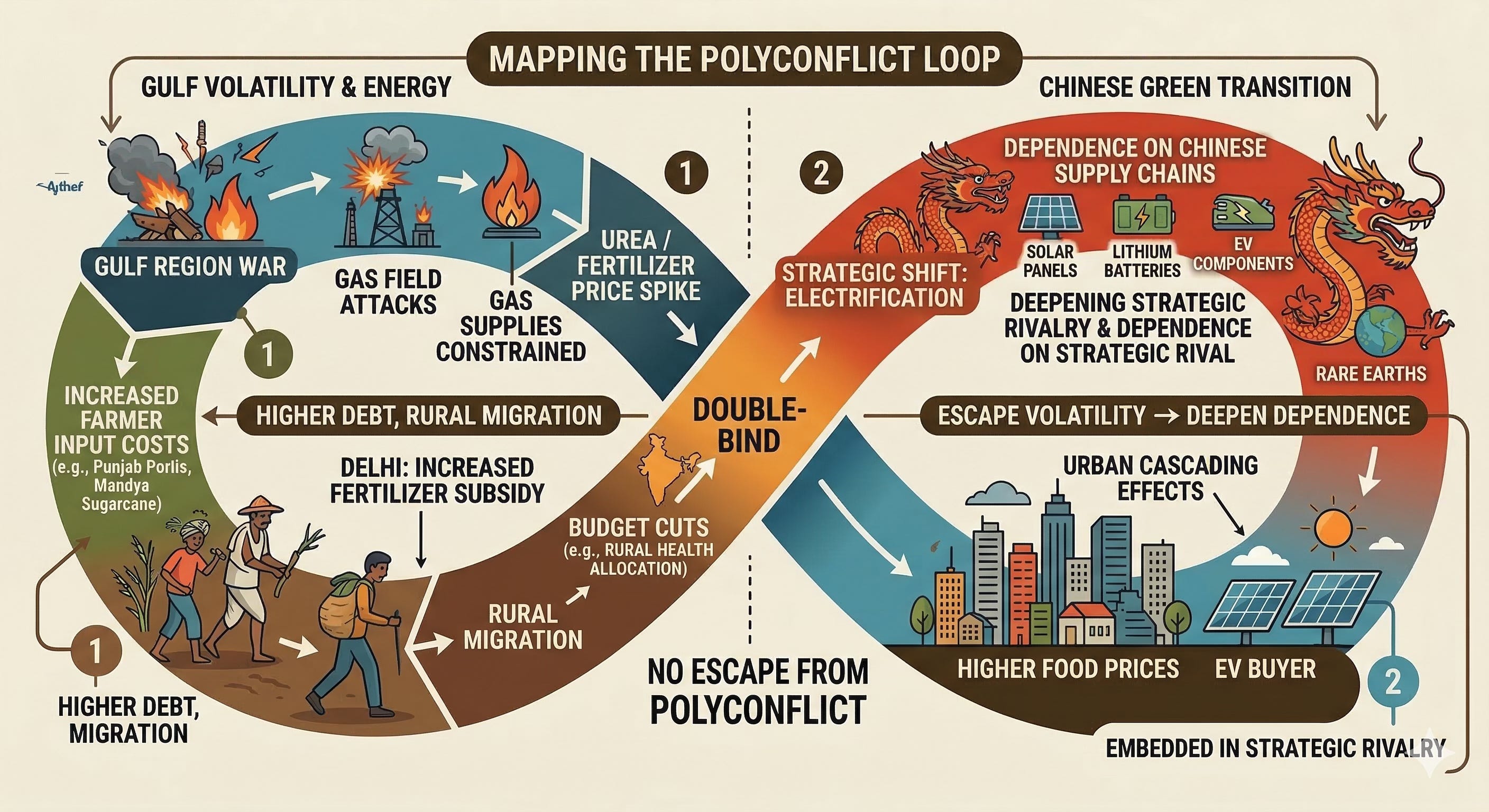 Meanwhile, the EV buyer in Bengaluru thinks she is making a responsible, localized ecological choice. It is a better choice, but it is one deeply embedded in a macroeconomic strategic rivalry. Tomorrow, she may not get spare parts because rare earth minerals needed for magnets are no longer available. There is no escaping the polyconflict for her either. These are struggles landing on ordinary people who don’t have a framework to understand what is hitting them, or why.