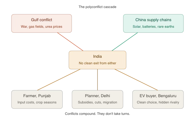 What if the correct word isn’t crisis, but conflict - ongoing, structural, open-ended, and immune to being fixed by the right policy, the right summit, or the right experts in the right room? That shift in framing from polycrisis to polyconflict is staring us in the face with the US-Israel-India-Gulf-China situation.