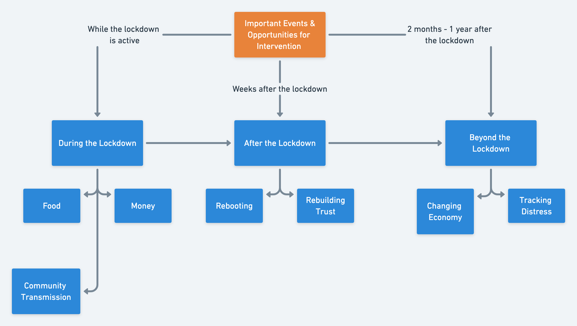 A keystone model for the COVID19 crisis is the timeline: when did the disease break out in a community and how fast is it spreading? When will it peak? What will the burden on the health system be at that time? Can we make the response easier to manage by flattening the curve? What’s the best way to do so: lockdown or social distancing? If a lockdown, for how long? How do we feed and shelter people losing livelihoods during the lockdown?