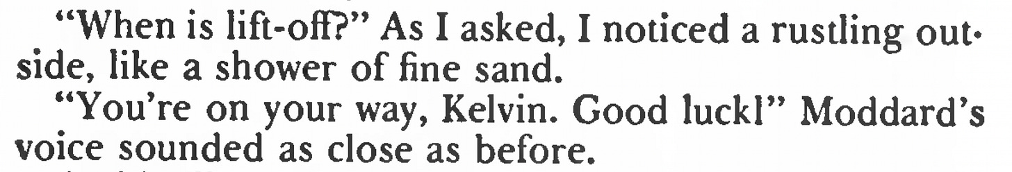 While Kelvin is getting ready for entry, scan the situation around you and make a quick assessment. Are you in outer space? Are you being instructed by mission control?