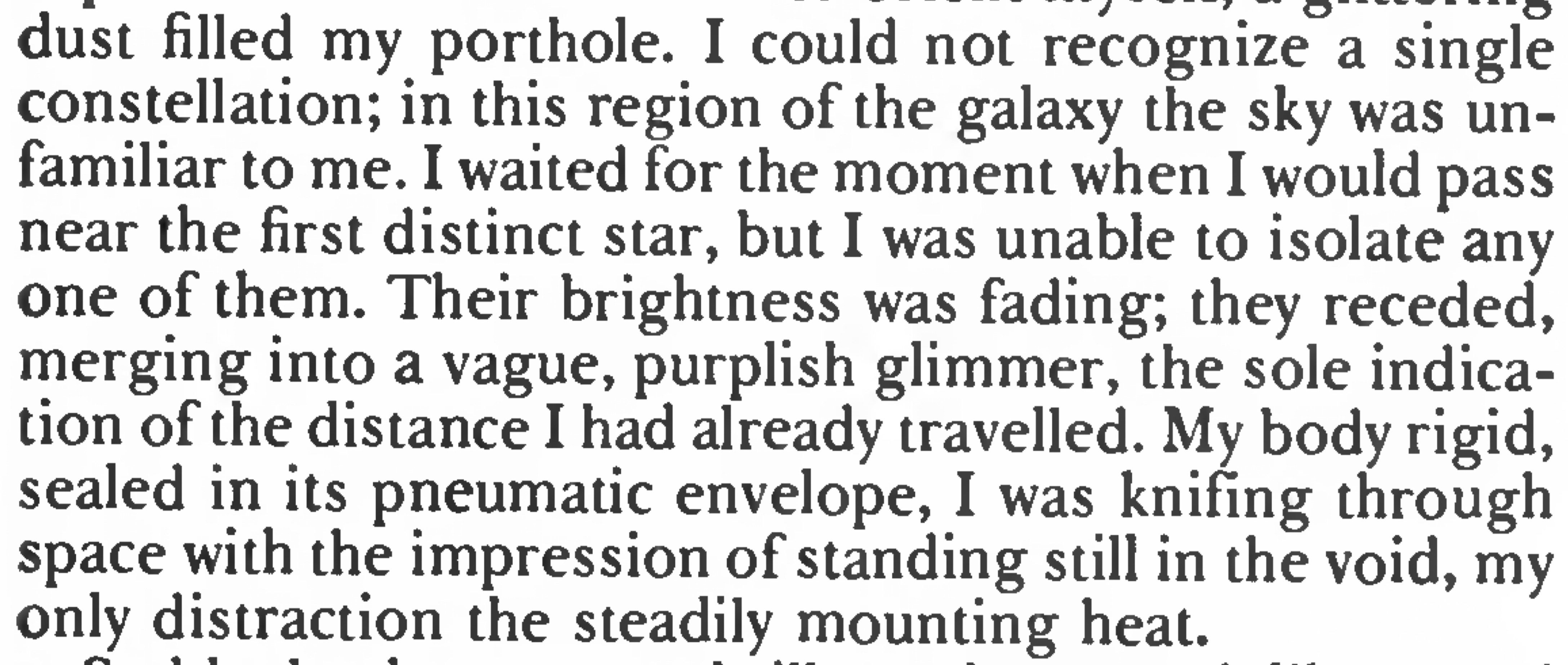 Godspeed. May you live in interesting times! Interstellar space is vast, and while it can be measured and known in abstract terms, it’s permanently inhospitable to creatures like us. There might be bacteria who can survive the rigors of near vacuum, but we can never make ourselves familiar in that bleached infinity.