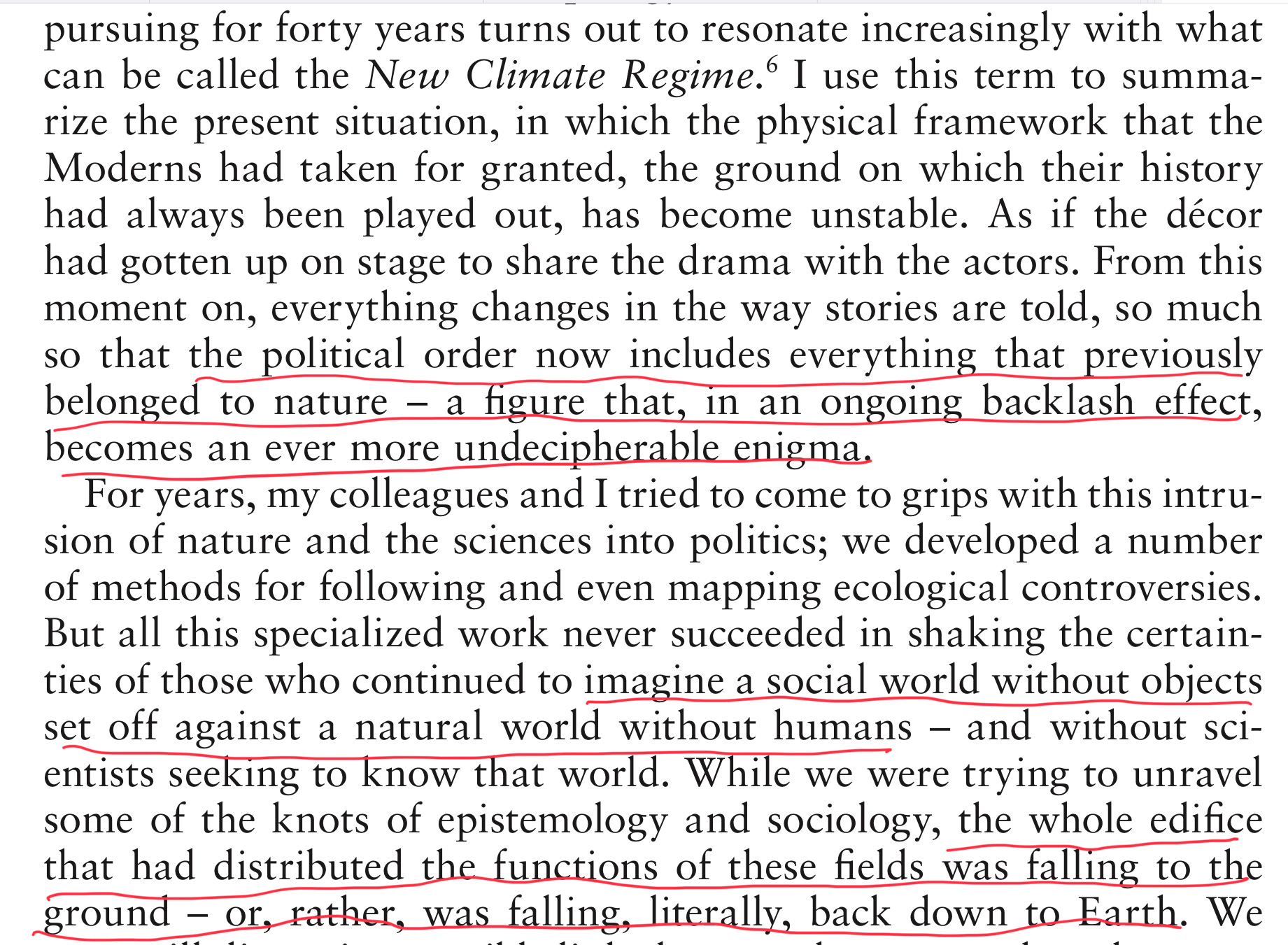 So what happens when the distinction between nature and society dissolves and, as a result, so does the corresponding distinction between science and politics? How do we formulate new ways of being with others and ways of knowing that go with that being?