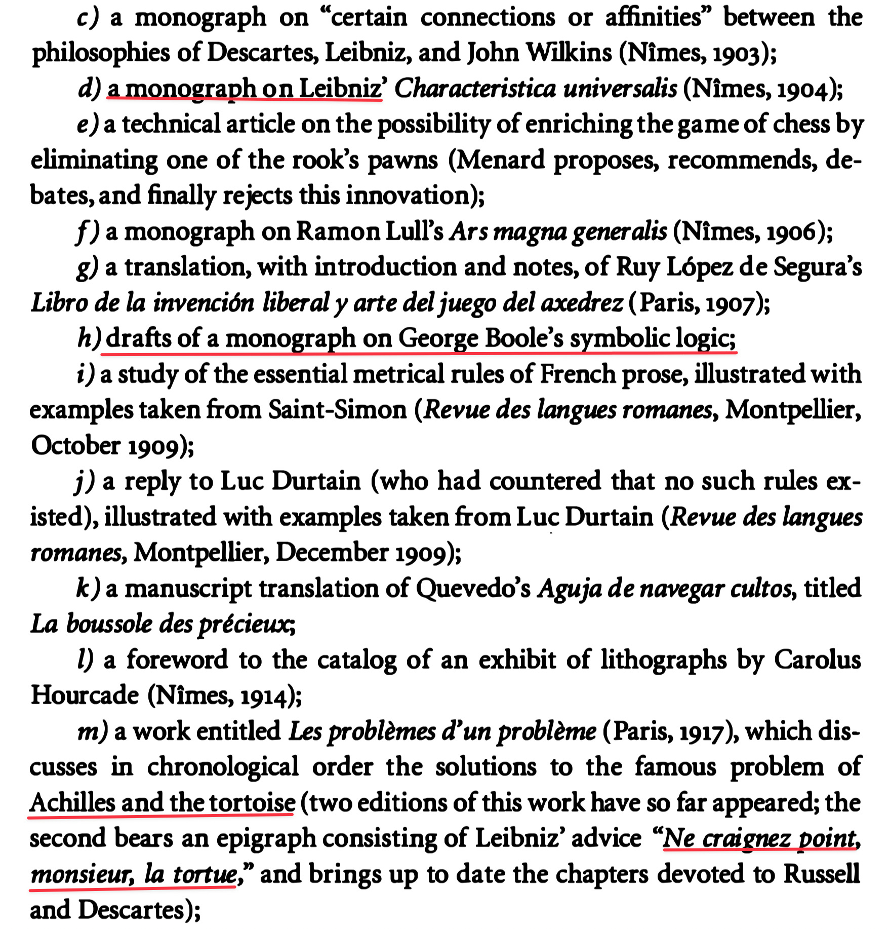 According to Borges, Pierre Menard was a practitioner of right-handed Tantra in public. Among his many achievements was a book on George Boole’s symbolic logic. He also worked on Leibniz’s philosophy and Zeno’s paradox - which makes me believe the longstanding rumor that he was working on a manuscript on the continuum.