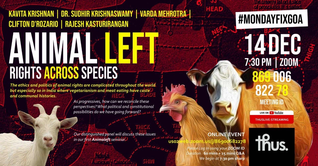 I am a member of an Animal Rights group called - wait for it - Animal Left. I am really excited to invite you to our first Animaleft seminar next Monday, December 14 at 7:30 PM IST/9:00 AM EST. I am moderating a very distinguished panel: