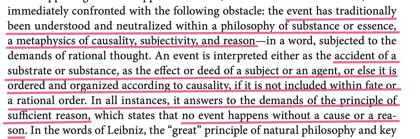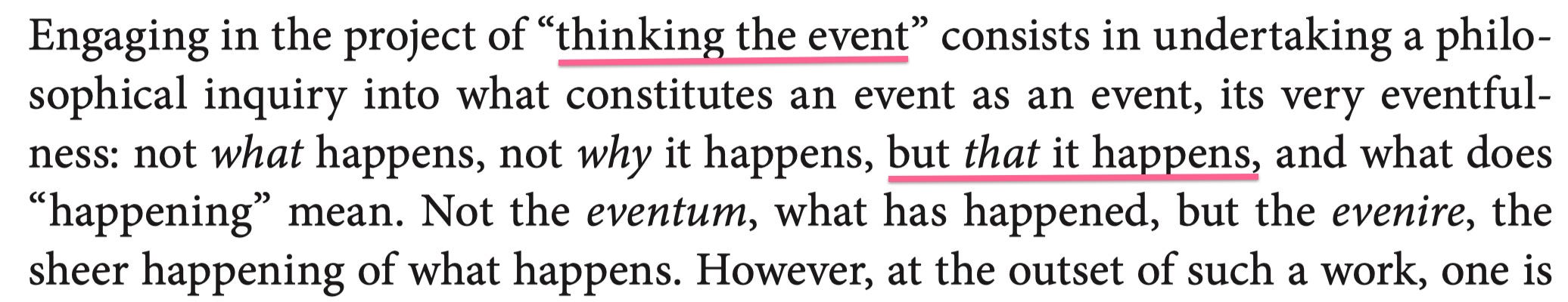 But the thatness of an event isn’t a thing in itself - the ‘event as event’ engages more than the event itself. Why:
