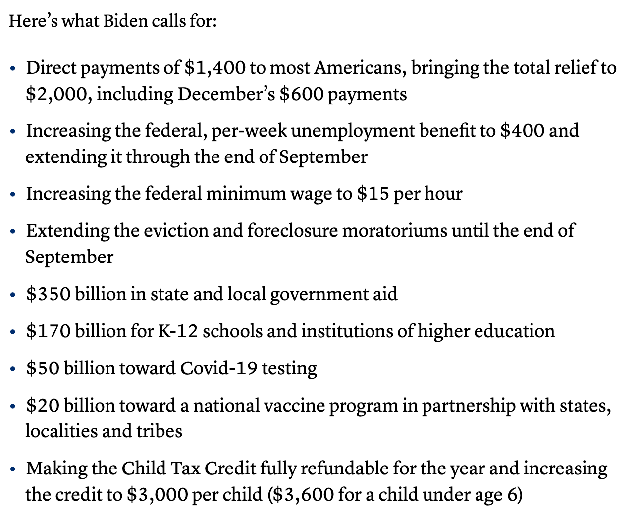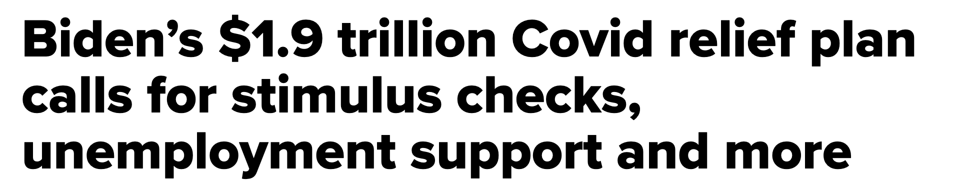 Looks like Republicans will support it, so it will pass - anyway, with the win in Georgia, the Senate and the House will vote with the Biden administration on this plan. If Biden’s luck holds, his first year in office will see the economy roaring back.