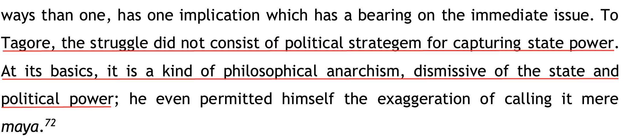 Technologies change and the resources over which we are fighting for also change, but yesterday’s belligerents and today’s superpowers share the colonial instinct. Both Tagore and Gandhi were acutely aware of the problems with this instinct as such, not the specific nations and rulers it was attached to at that moment in time. But Tagore was ahead of Gandhi. For him: