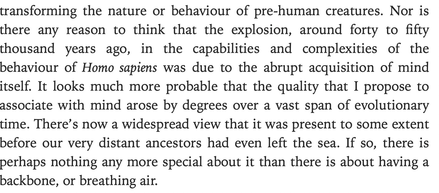 A subtler form of parochialism is the belief that other beings have minds, but we can’t access those minds because we are hobbled by the specifically human kind of mind we have, which comes from the belief that our minds are central to knowing the minds of other creatures.