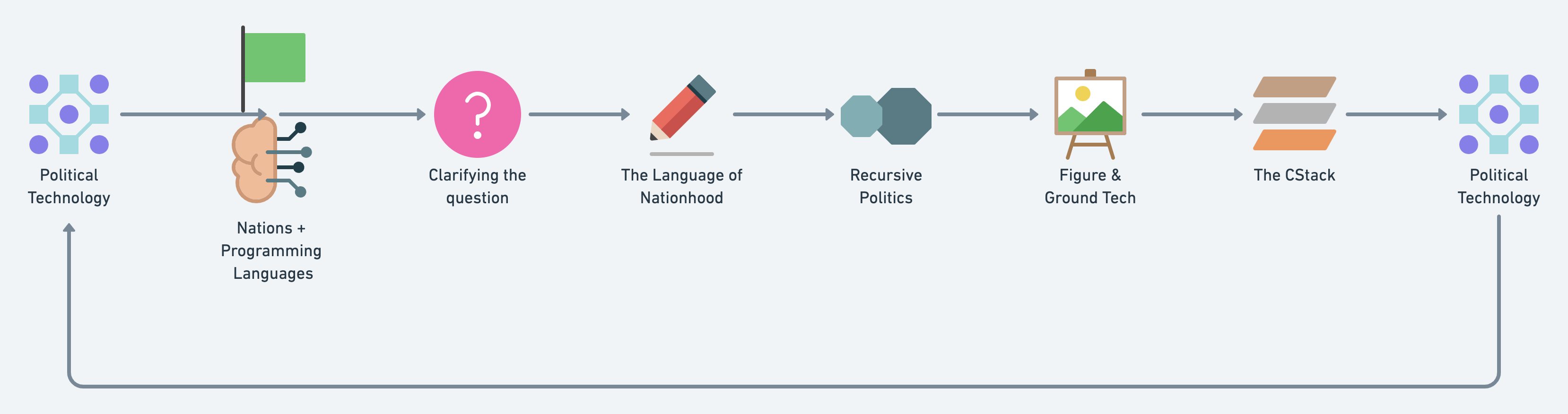 What happens to our idea of political community when we change the technology used to imagine it? I believe code is making that reimagination possible. To add one analogy upon another, consider the idea of a recursive recipe and what it does to cooking.