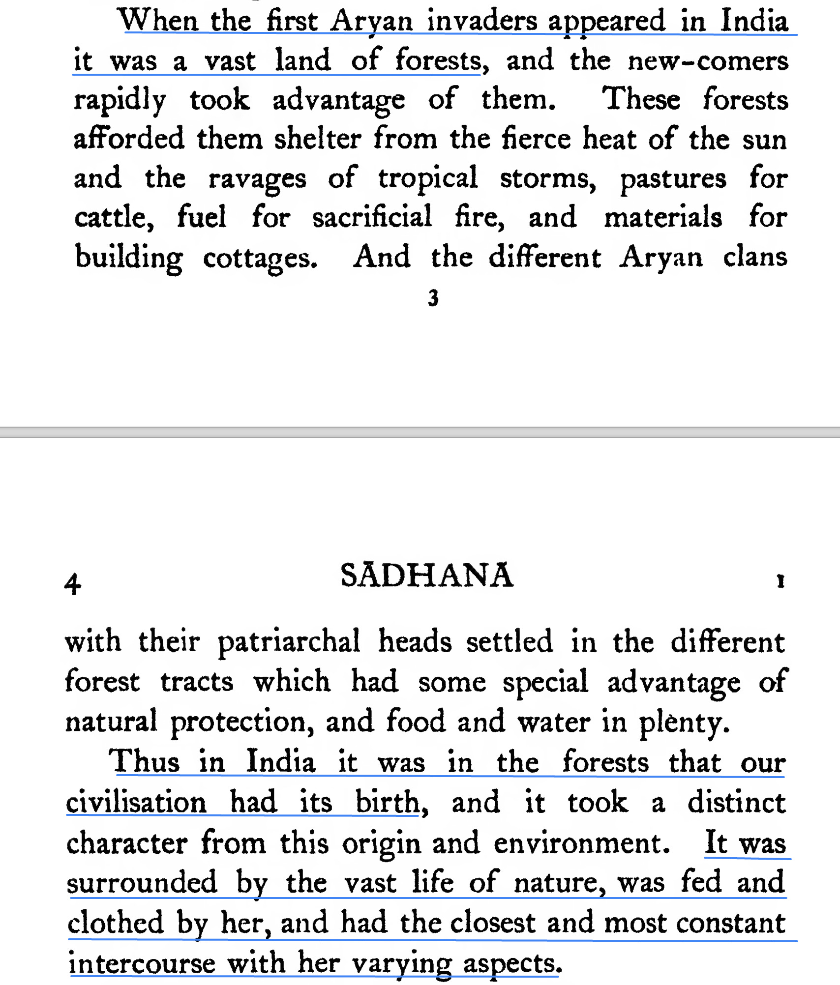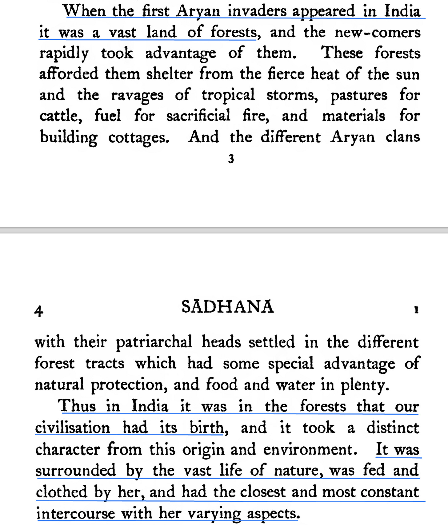 Around the time he won the Nobel, Tagore wrote a book called Sadhana, which was his take on Indian spirituality. The book can be read in many ways but for our purposes, its most important thesis is the claim that Indian civilization took its birth in forests. Don’t take that claim too seriously! - whatever its truth in the past, our civilization, such as it is, is vehemently opposed to forests today. But it helps us pose a question: