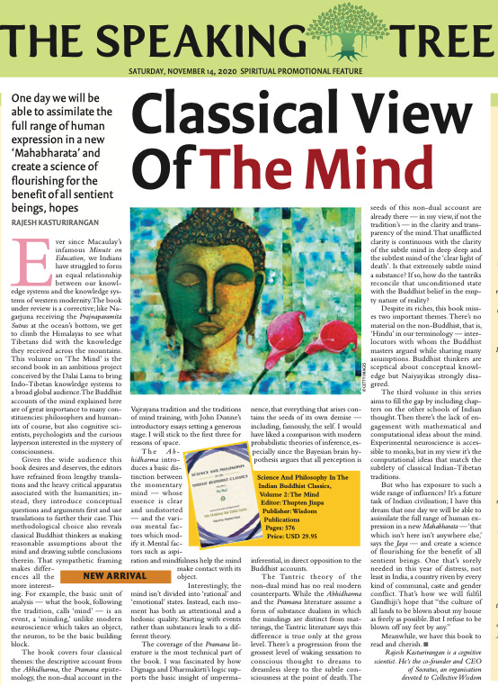 Despite its riches, this book misses two important themes. There’s no material on the non-Buddhist - i.e., ‘Hindu’ in our terminology - interlocutors with whom the Buddhist masters argued while sharing many assumptions. Buddhist thinkers are skeptical about conceptual knowledge but Naiyayikas strongly disagreed. The third volume in this series aims to fill the gap by including chapters on the other schools of Indian thought. Then there’s the lack of engagement with mathematical and computational ideas about the mind. Experimental neuroscience is accessible to monks, but in my view it’s the computational ideas that match the subtlety of classical Indian-Tibetan traditions.