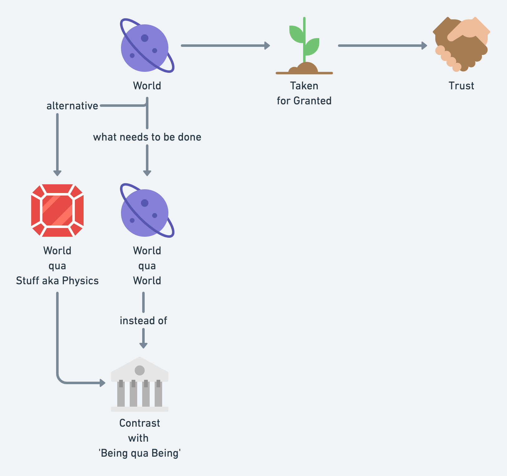 I find that criticism hard to accept - if there's one thing we trust, it's the world. We know that the world just works, that it is the mark of the real. The world isn't a blooming buzzing confusion of clotted elementary particles - it's the ground of meaning. Without the world presenting itself as a meaningful array, there would be nothing else. It's the precondition for knowledge, for to grasp something is to already understand that it's in the world with you.